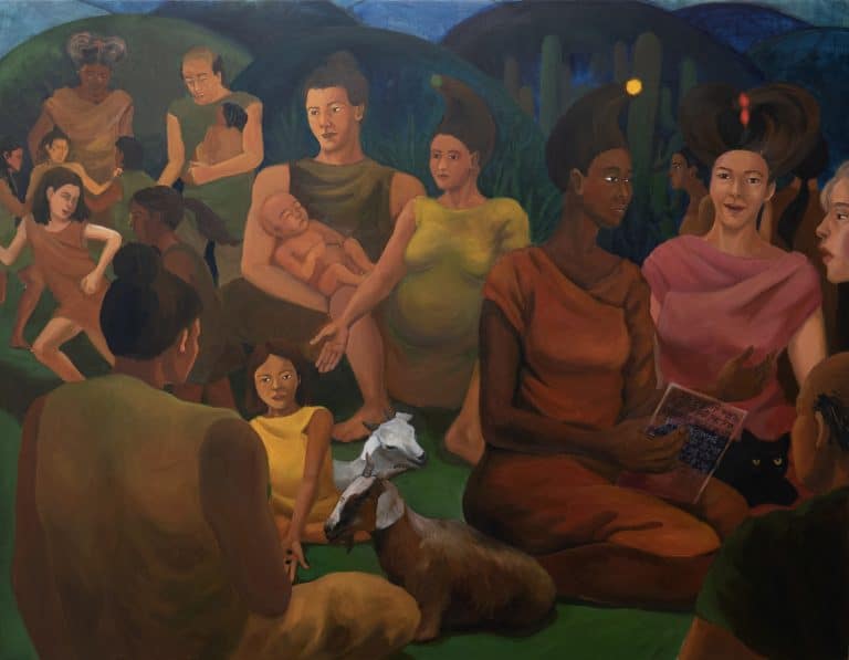 Lizardians is a 3-D animation short that depicts a reality in which a technology that applies the axolotl salamander’s genetic powers of regeneration to the human body has been commercialized for mass consumption. Beyond neoliberalism and cognitive capitalism, Lizardians is set in a biocapitalist factory where conflict arises between protagonists from different classes as they question the value of labor, creativity, agency, and authorship. Each of the three channels embodies part of the story, like limbs to a whole: a regenerator (Lizardian), a janitor, and the RENEW corporation itself. Shelby endures pain, immobility, and isolation in order to perform her job of regrowing her limbs, while Caleb works in the disposal department of the factory and in his spare time salvages defective human limbs to make art. As he develops a following on social media and begins to sell artwork made of company property, RENEW intervenes. Shelby and Caleb’s synchronous yet contrasting lives unfold separately until all three channels merge as they meet at the opening reception of Caleb’s exhibition featuring sculptures made with some of Shelby’s body parts.