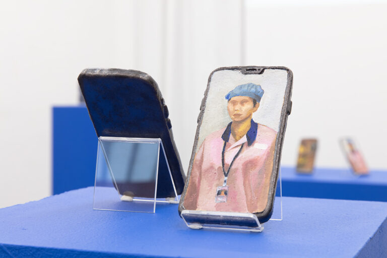 There are similarities in the unethical operations of global corporations such as these that include the exploitation and casual disregard for human life. When challenged, these companies simply moved their factories to less regulated Southeast Asian locations, where similar problems continue to occur. As customers and consumers, we are not given access to the stories of those who produce the goods we use. The shiny and slick surfaces of these electronics sold in similarly shiny and slick stores are designed to make us forget the hands that made the parts and assembled our devices. What if the products for sale resembled the individual workers’ physical appearances? How would a worker feel to see the result of that labor for sale, detached from their own body? Through Lizardians, the power relationship between an individual and a corporation is given shape and the moral responsibilities of living in a world increasingly dominated by corporations comes into question.